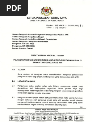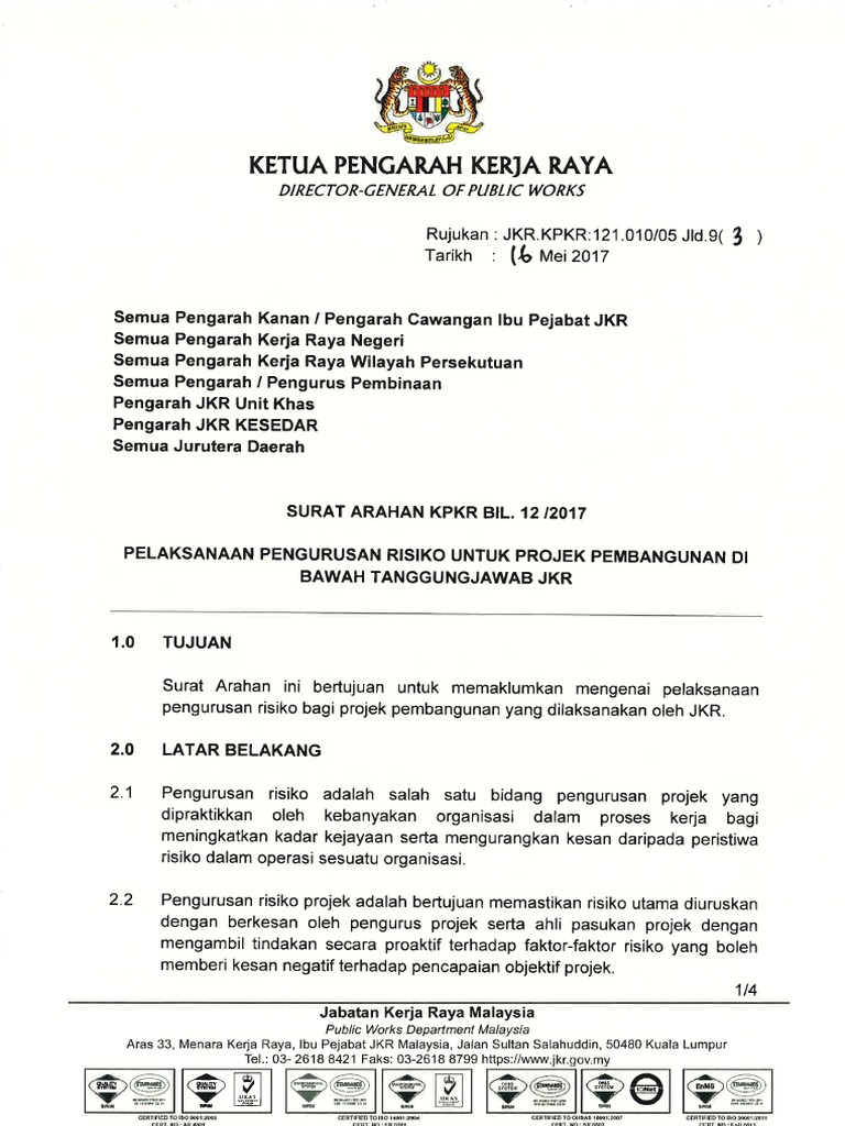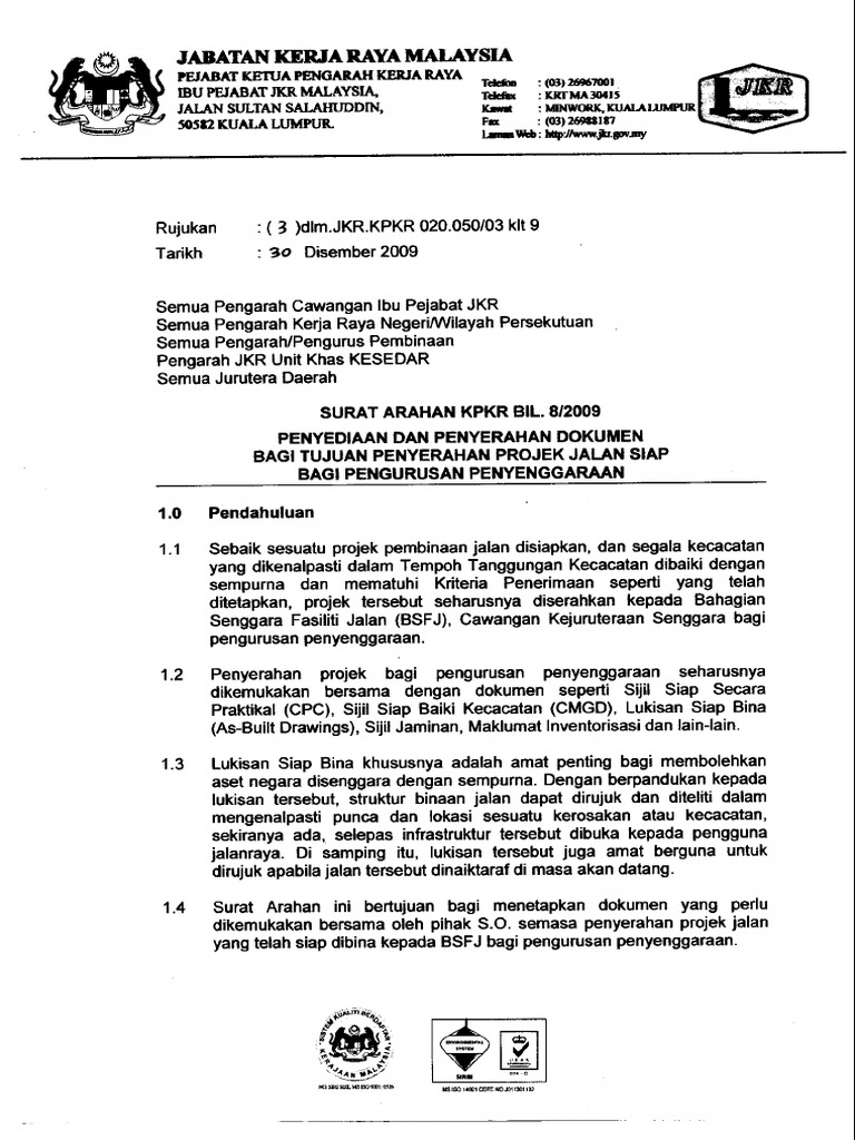 Kementerian Kerja Raya Tingkat 1-14 Kompleks Kerja Raya Jalan Sultan Salahuddin 50580 Kuala Lumpur. Rujukan surat arahan kpkr bil 192015 bertarikh. Surat Arahan Ketua Pengarah Kerja Raya Surat Arahan KPKR Bil.